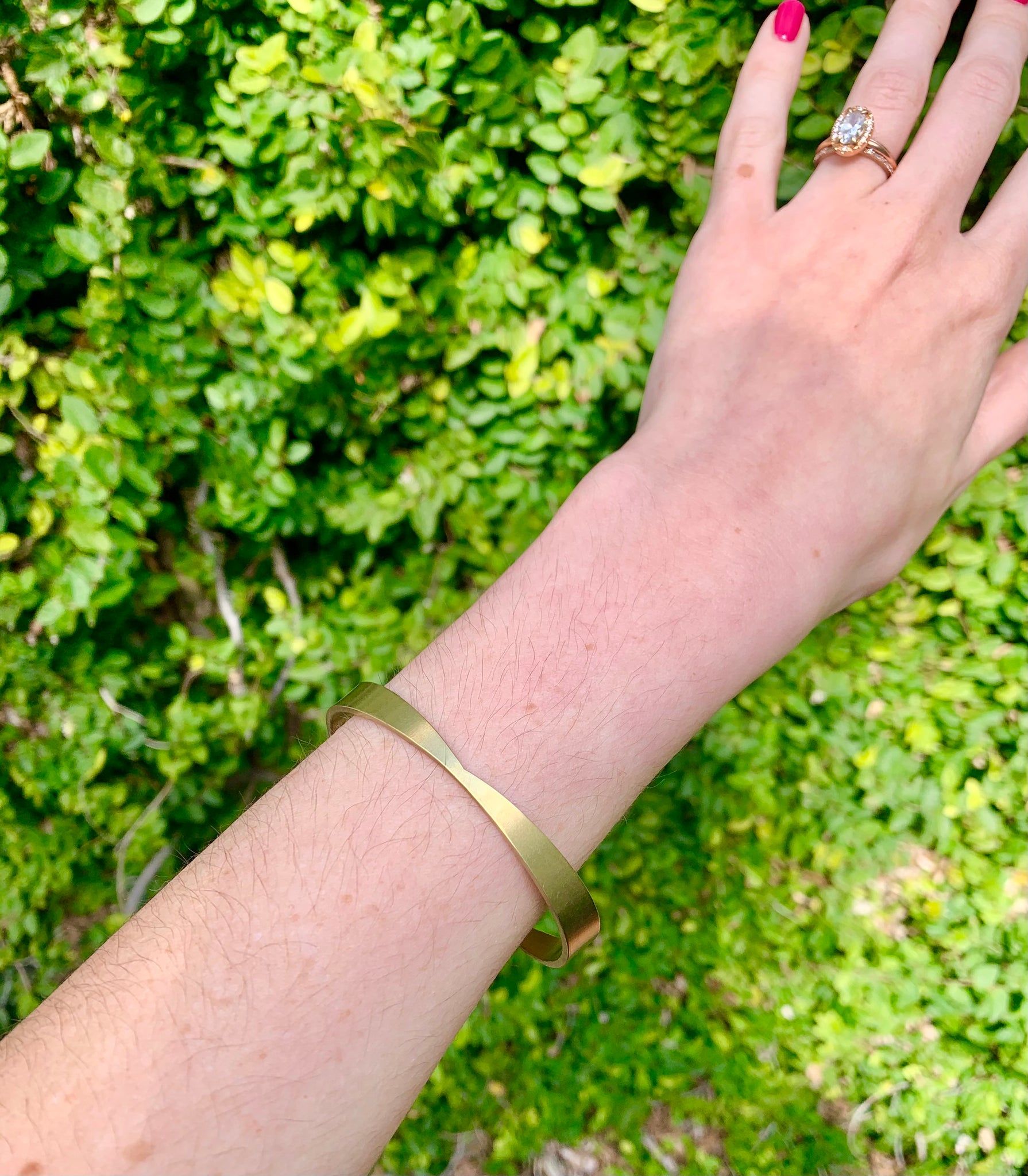 Simple and so pleasingly, perfectly shaped! This cuff is adjustable so it'll adhere to most wrist sizes and that'll make it easy to gift too.