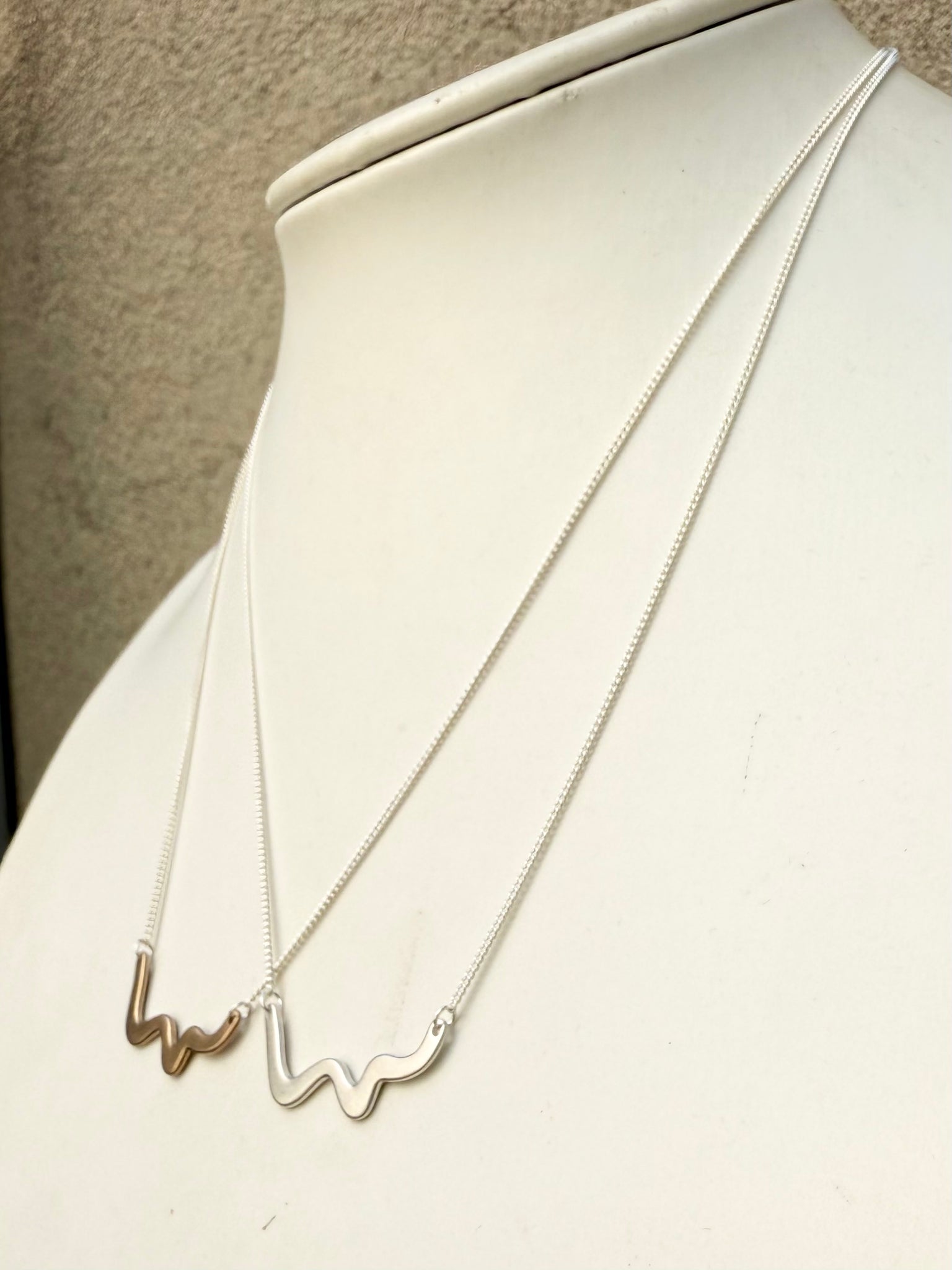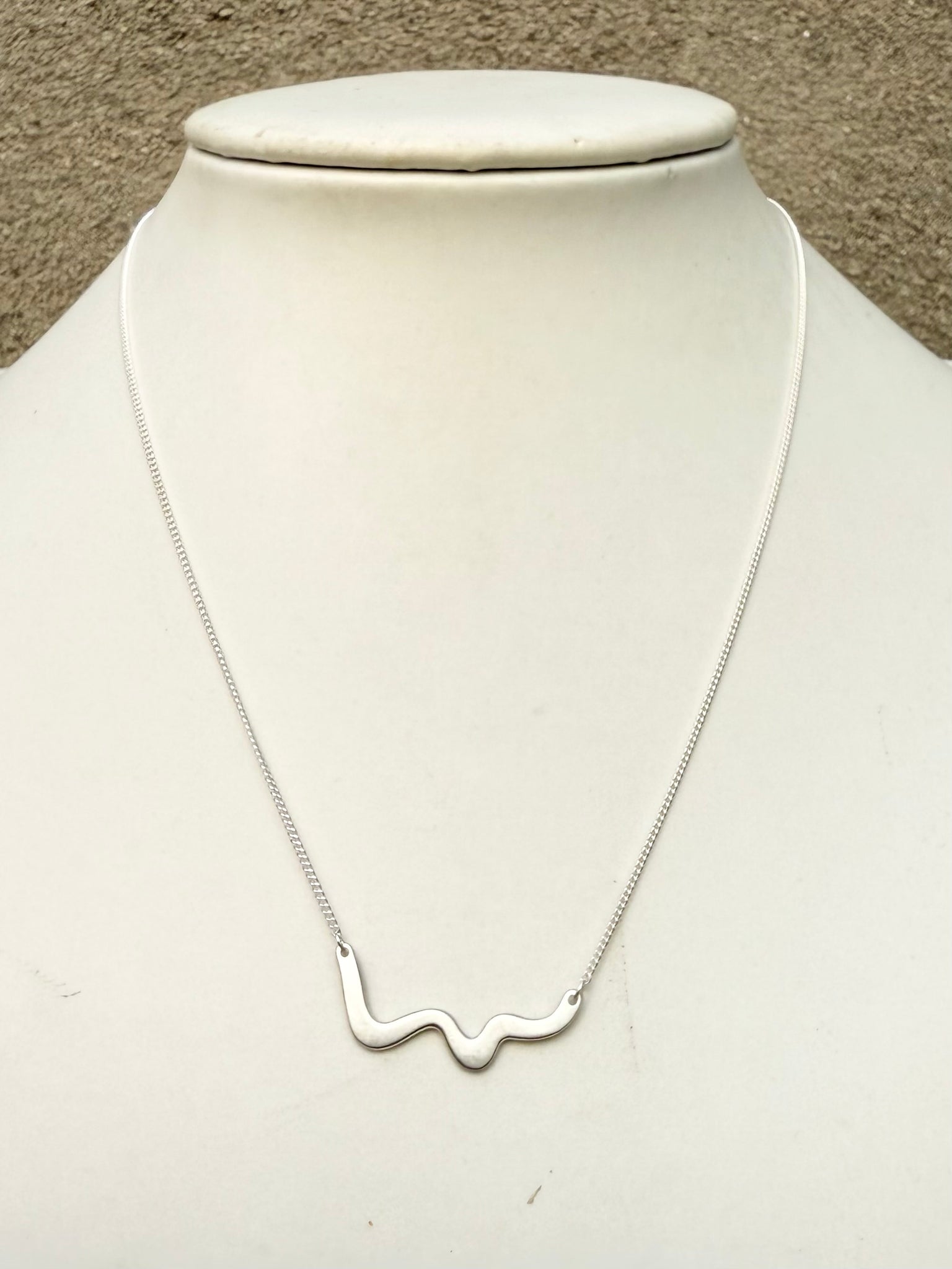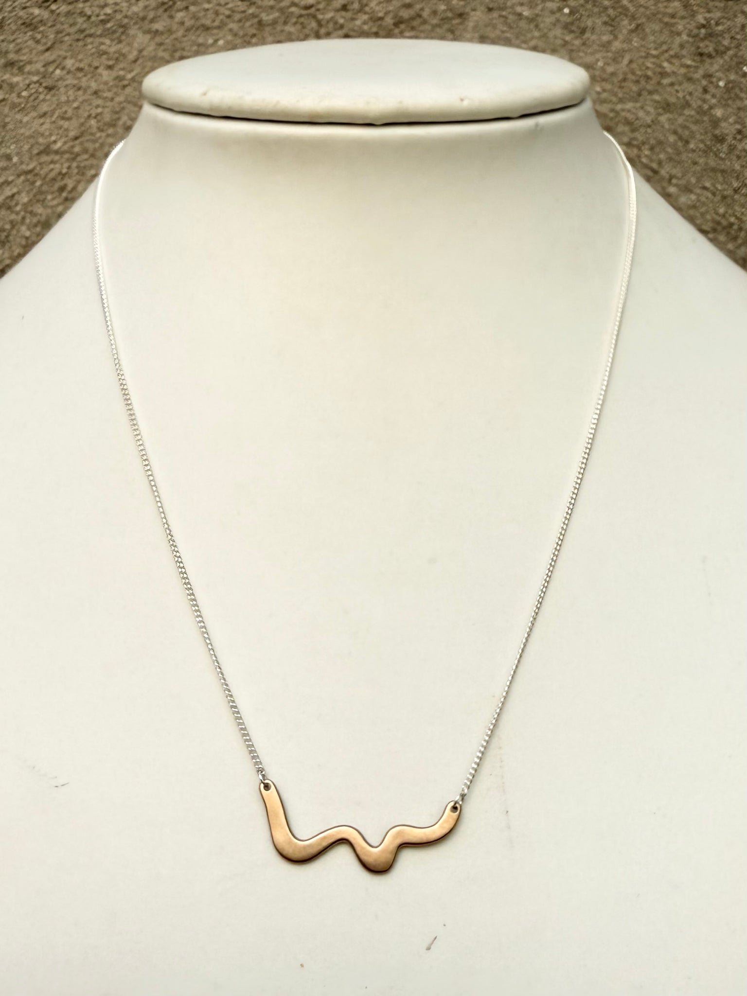 Subtle little squiggle pendant that is a great everyday wear and nice for layering.