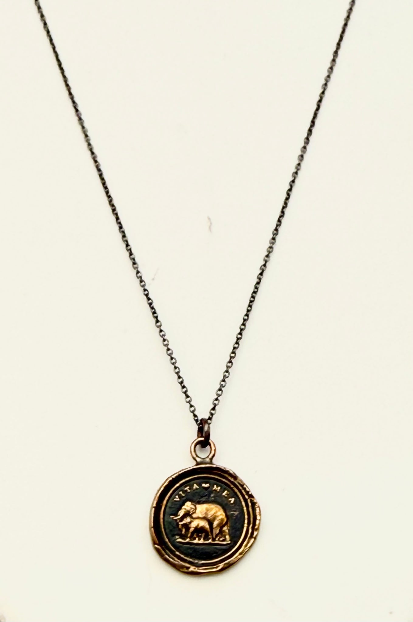 The family focused elephant depicted with its young is symbolic of the strength of the parent child bond.