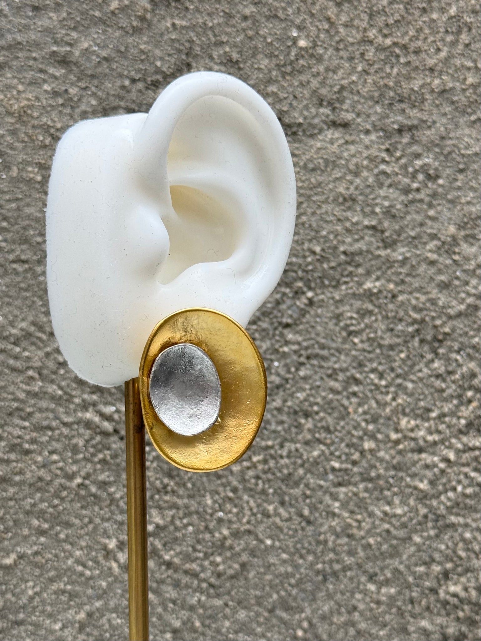 Beautiful wear! Overlapping ovals of contrasting metals give these a stark eye appeal.