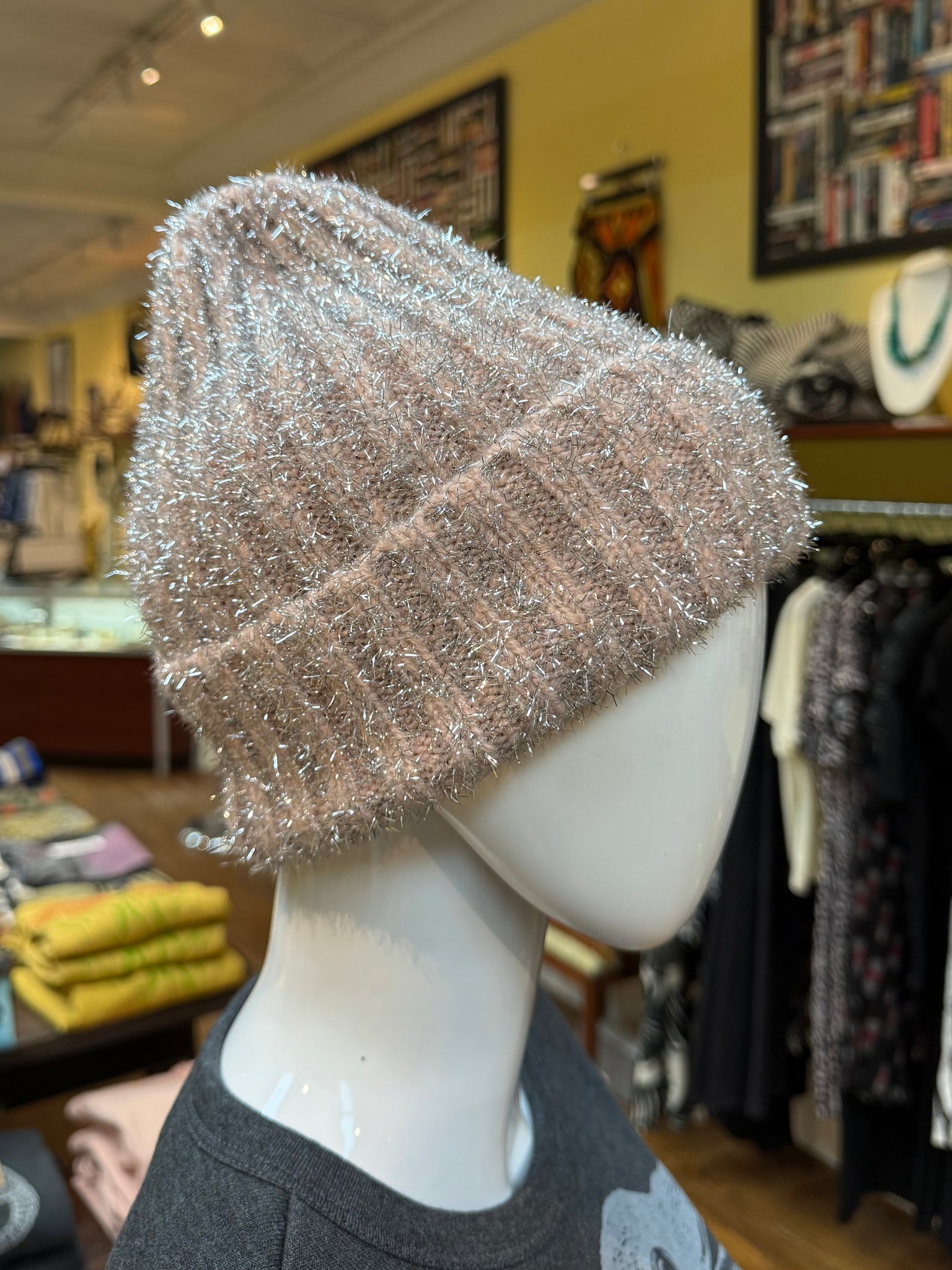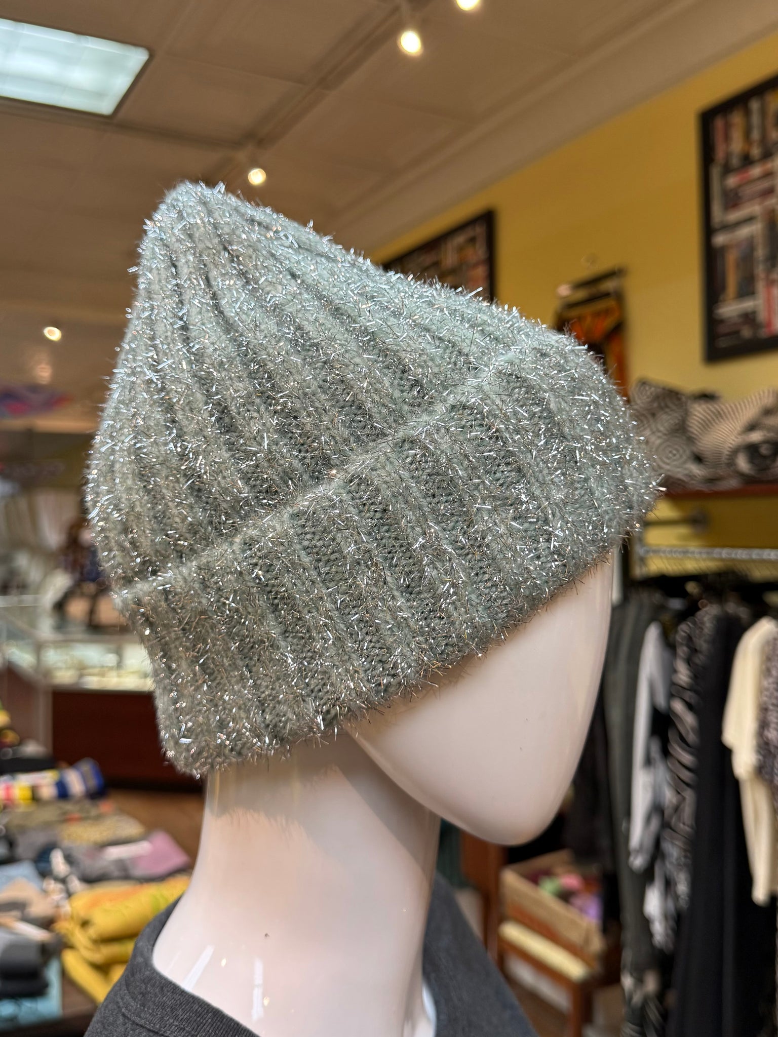 Very cute ribbed knit skull caps with some sparkly tencel detail throughout. Fun and warm!