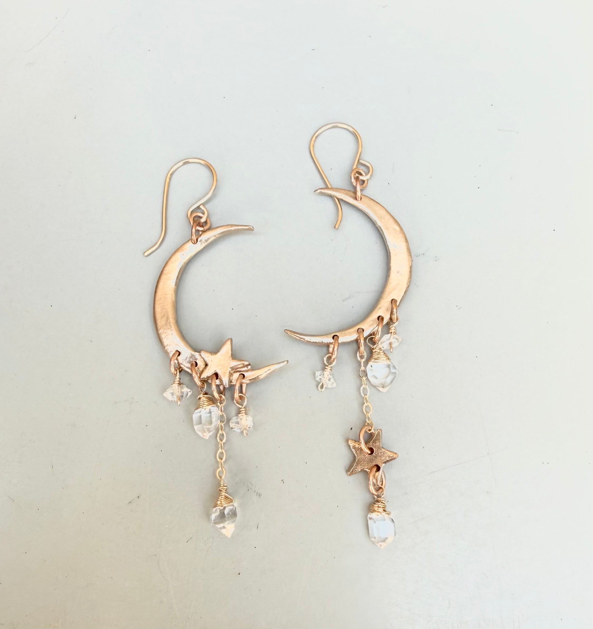 Just like the popular Night Swimming Earrings but a little smaller and some different gemstones. A magical collection of celestial wonderment encompass these lovely earrings!