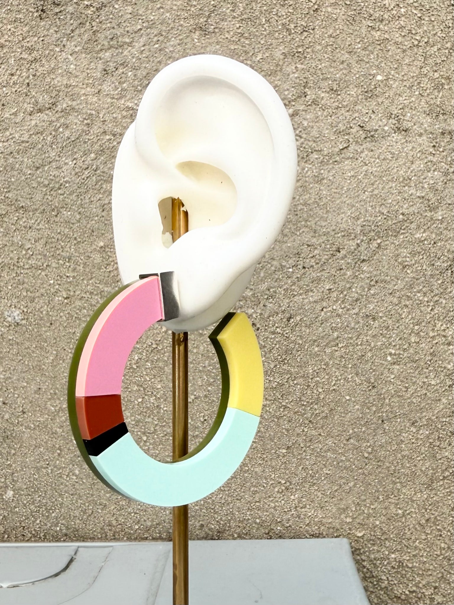 So much wonderful color with these earrings. They are double sided too so you can switch ears and have a couple of different looks. Add color to any day!