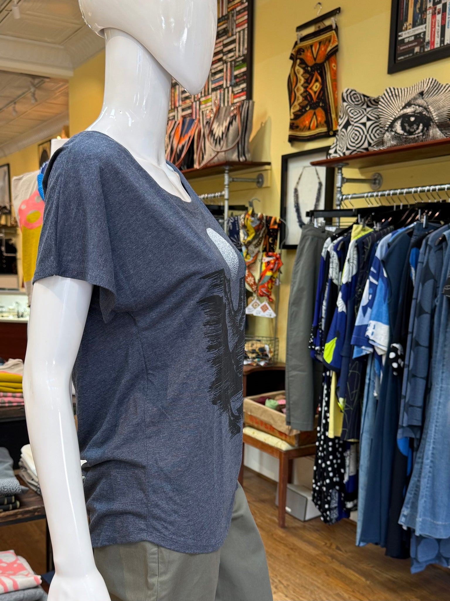 Easy fit tee with a really fun screen print and a smooth, soft tri-blend fabric.