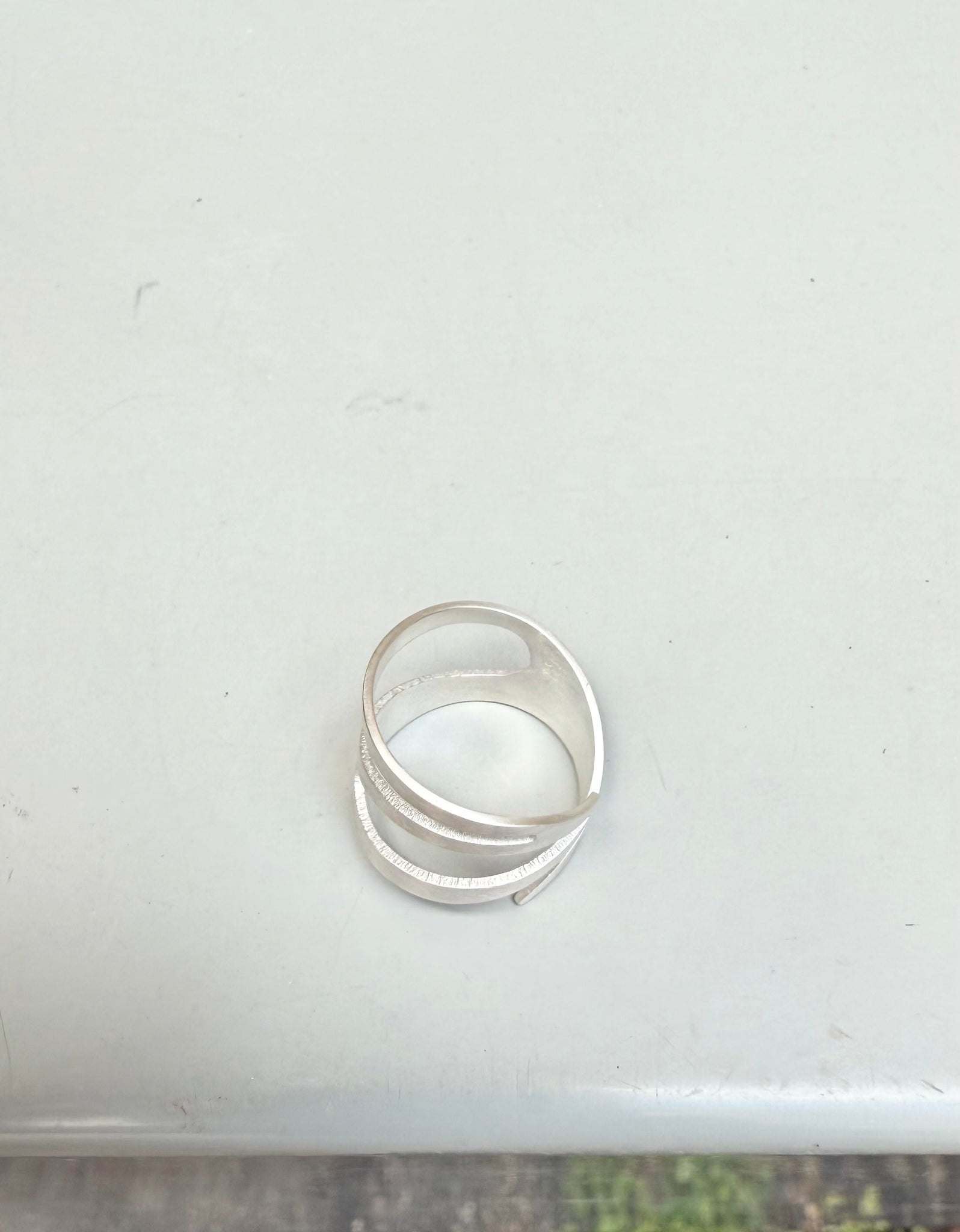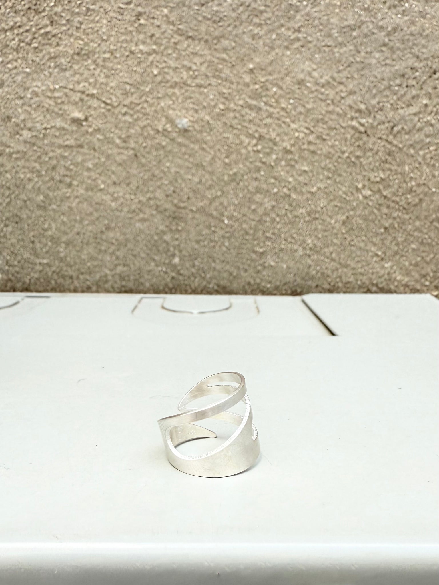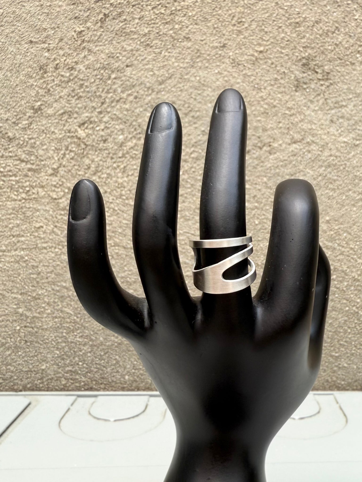Hand formed adjustable ring that wears wonderfully. Offers great finger coverage without being too long.