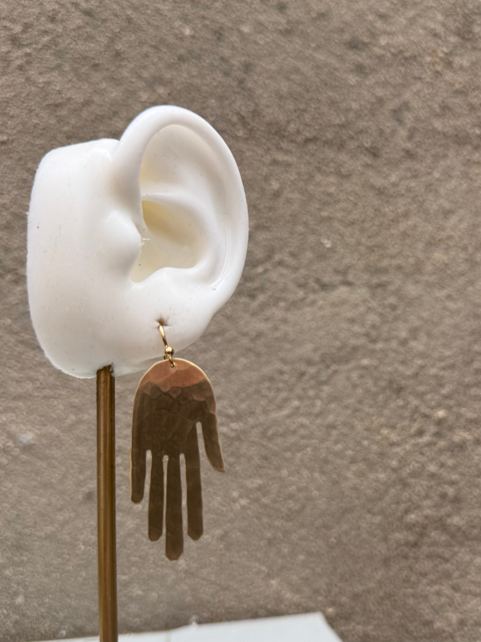 Whimsical and full of charm and mysticism. These earrings feature hand forged sterling hands with a great hammered finish that captures all that good natural light. Very lightweight and very cool!