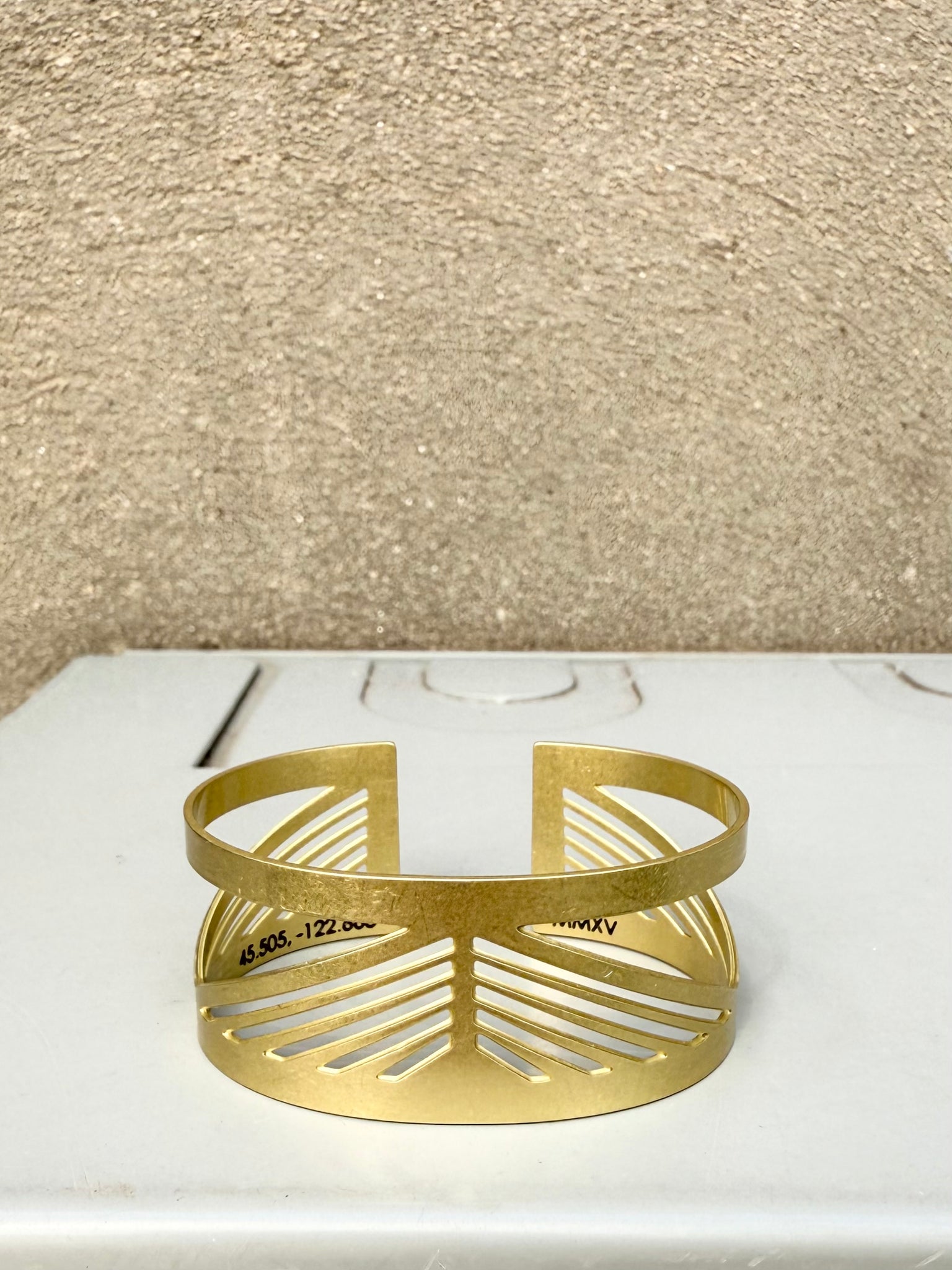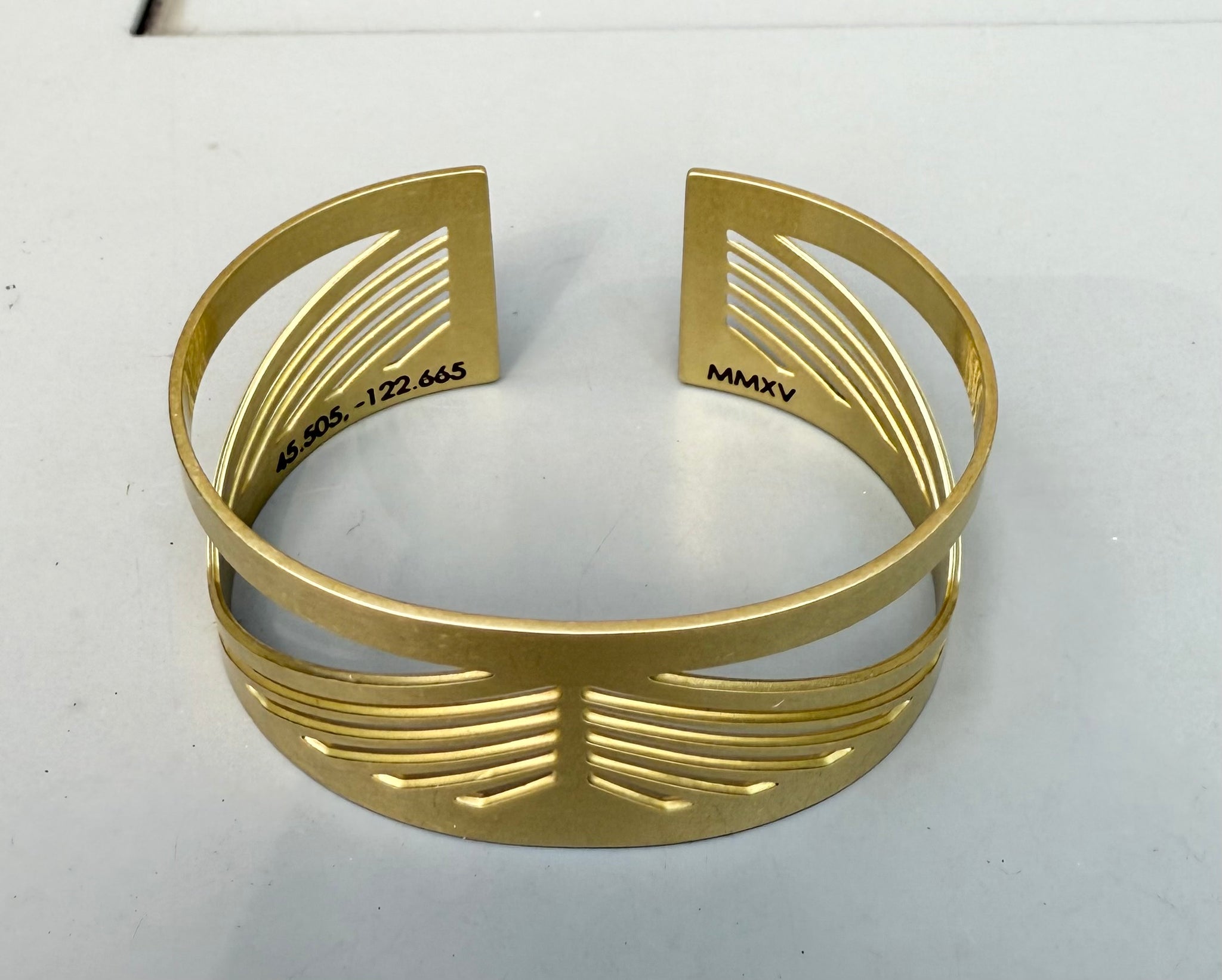 Part of this designer’s Bridge Cuff Collection.“Each cuff in this collection is a celebration of the bridge’s unique elements and structural beauty. Etched on the inside, you’ll find the year the bridge was completed and its geographic coordinates.”