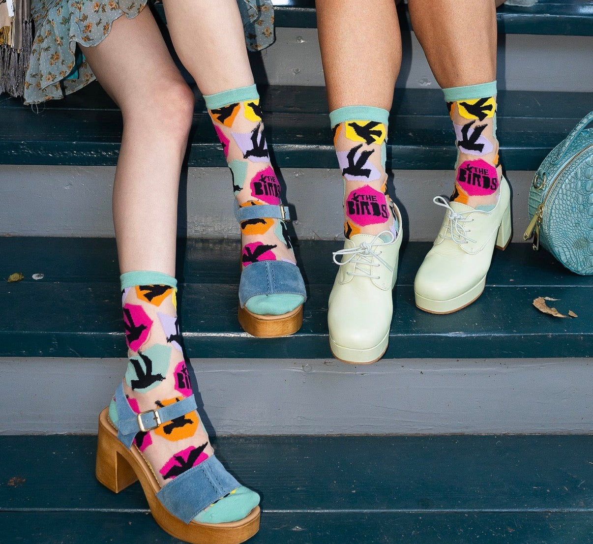 The sheer socks are a must to not only elevate your sock game but also to beautifully accent your shoe game. You do not see your heel or toes in these socks so you can wear them with any shoe. We love them with any sneaker, short boots, and clogs. These provide lots of great color and plenty of interesting details.