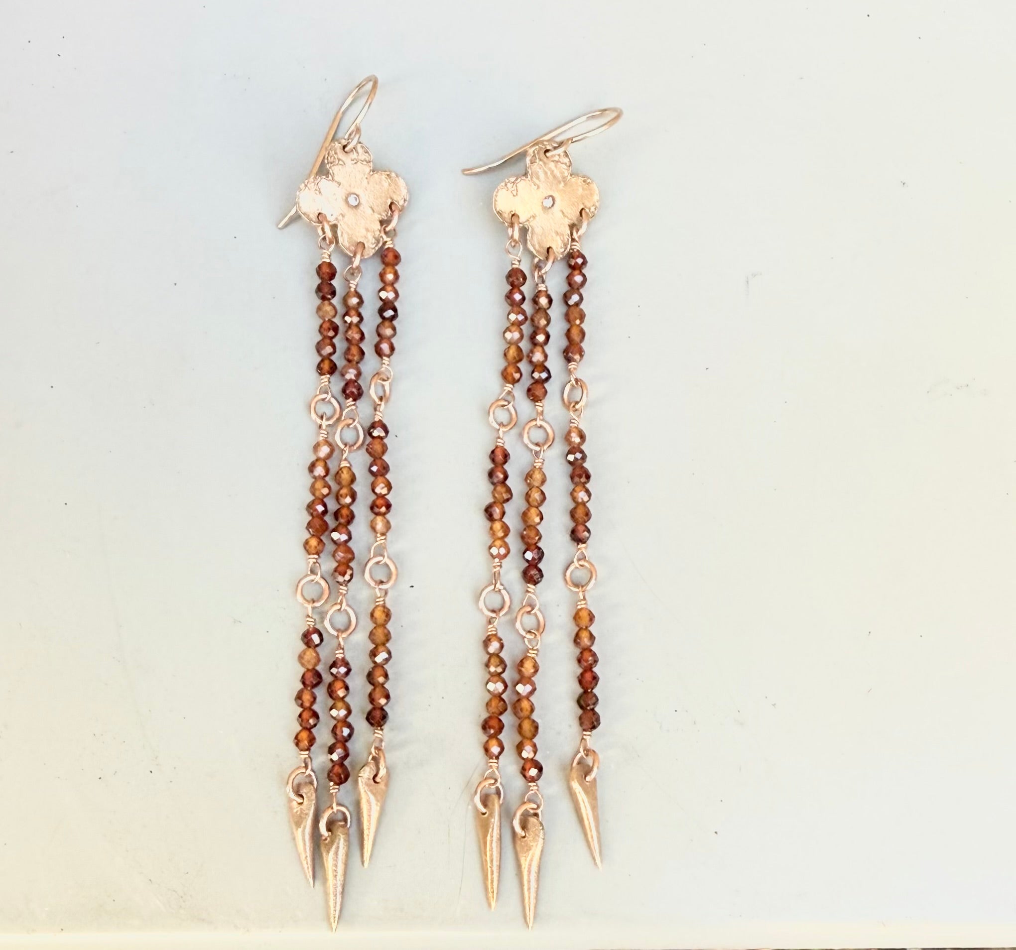 Thin fringe of petite brown garnet stones with handmade bronze accents. Beautiful wear!