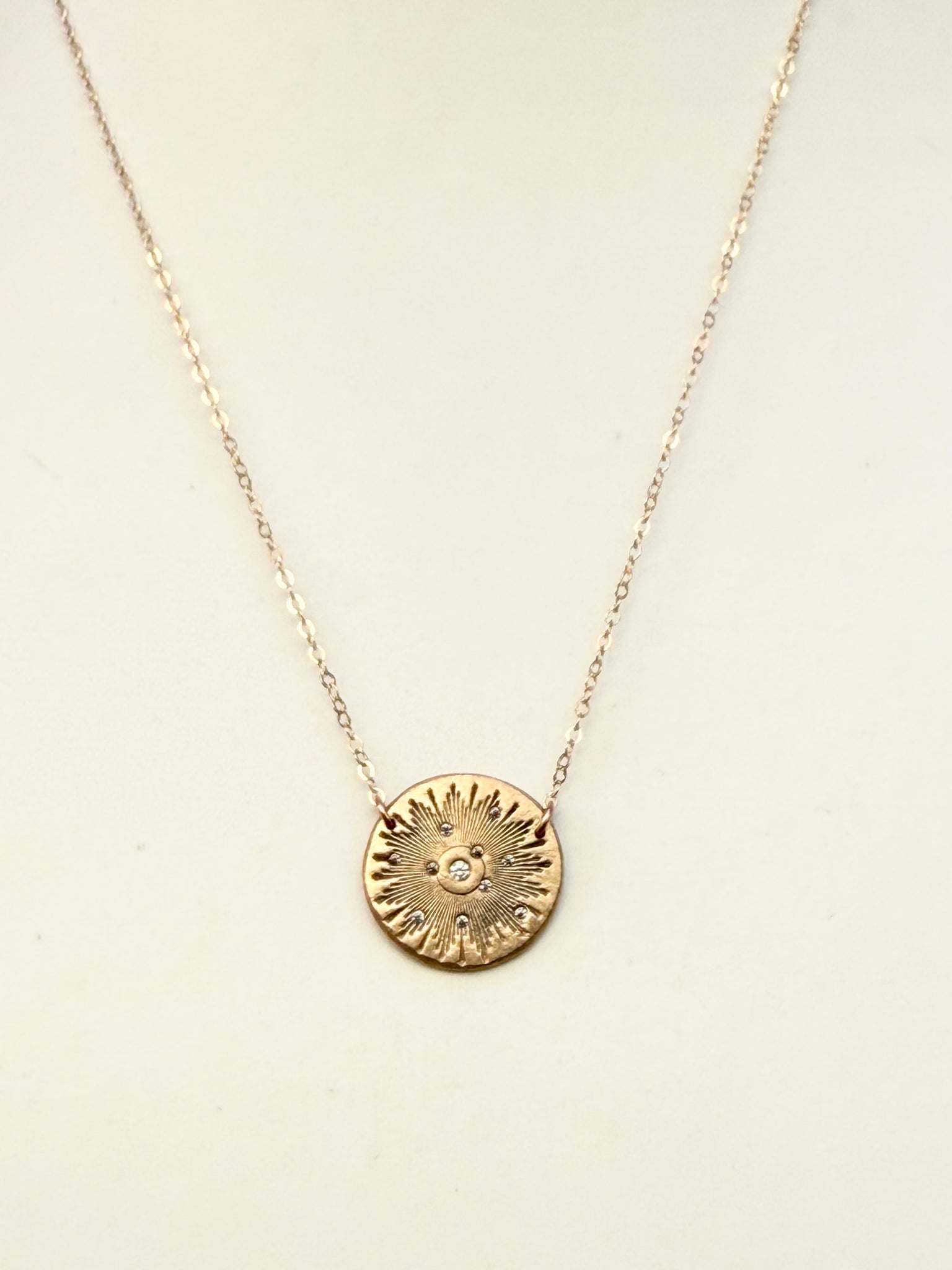 Shimmer and Shine, rise up with the sun and harness that energy. This bronze sun is adorned with lots of mini sparklers.