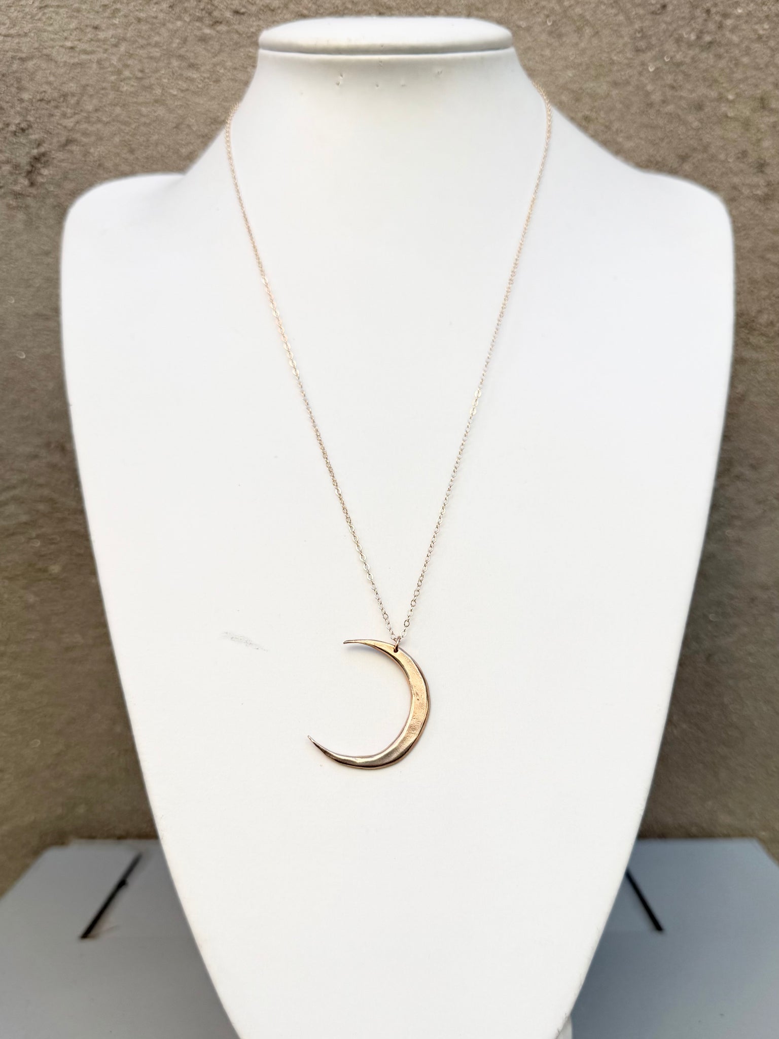This necklace represents the crescent moon-just a sliver of beautiful glowing bronze. Harness the energy in the most delicate way.