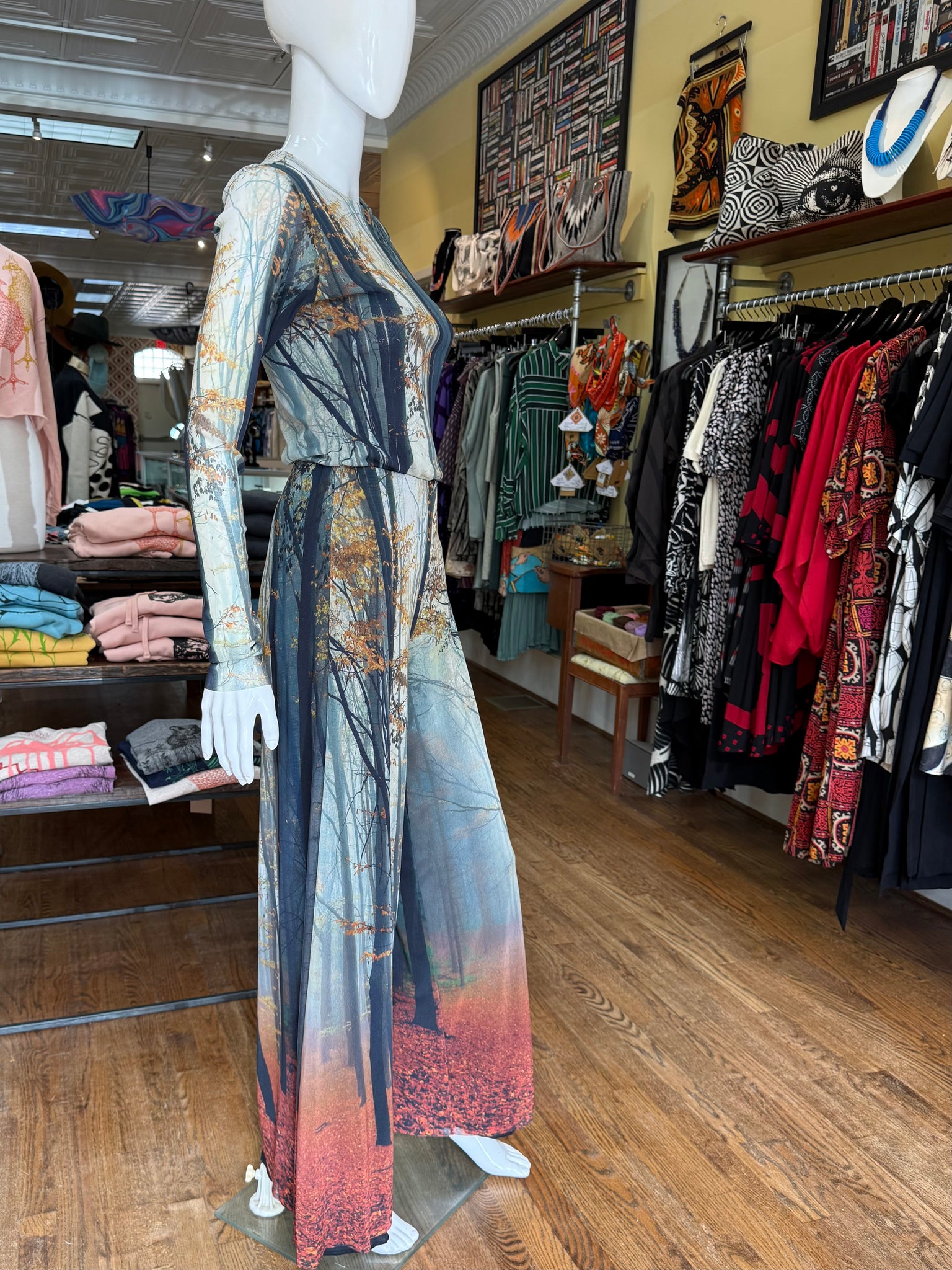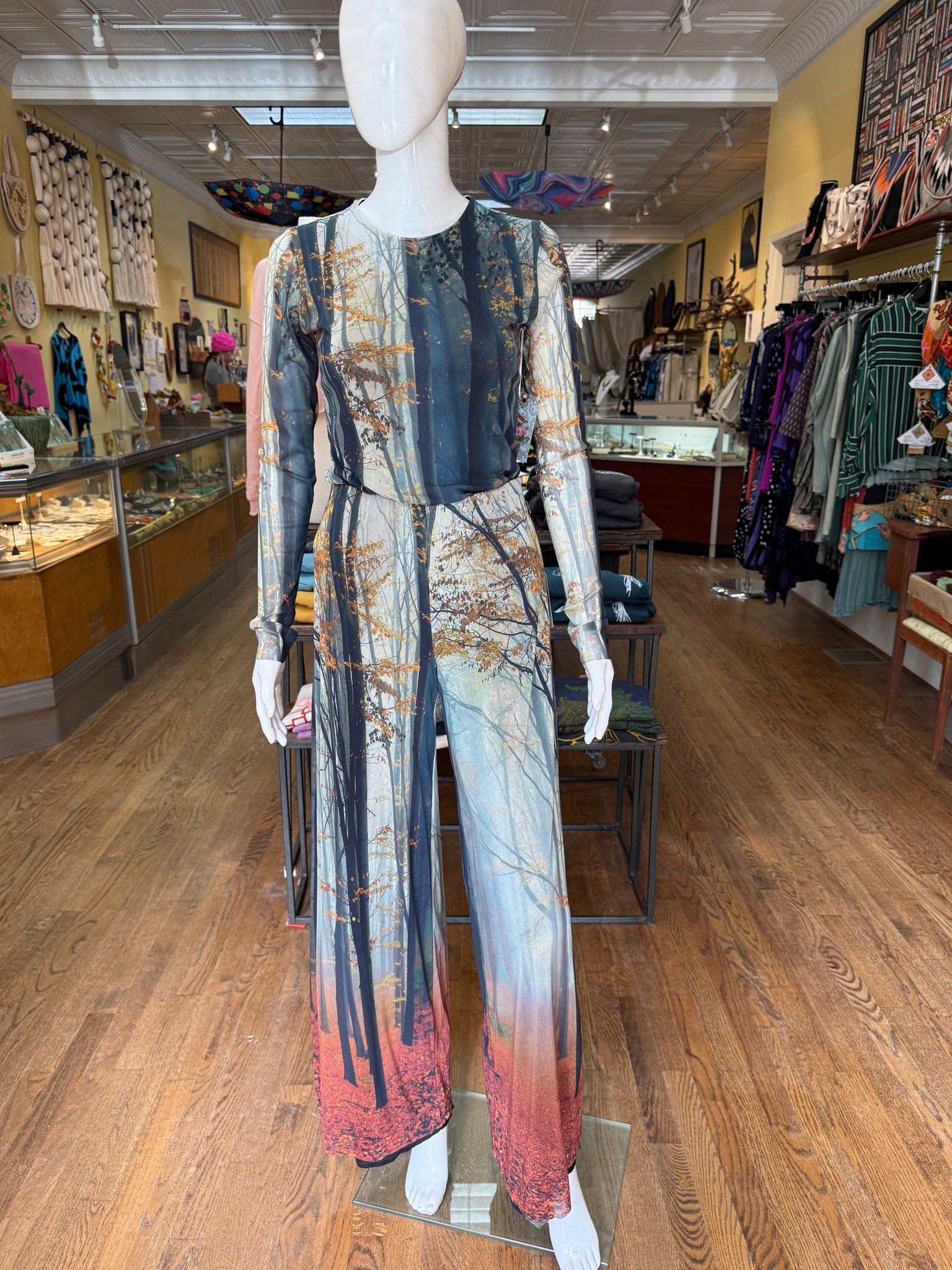These pants have the coolest printed forest imagery. They just draw you right in and never let go. The fit is a classic flair look that’s easy and very comfortable. Try them with your favorite boot or clog and there’s also a coordinating top for a full forest reveal.
