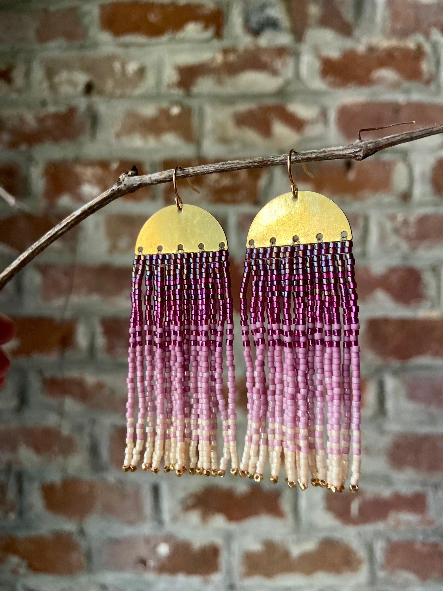 Wonderful woven and hand strung glass beads inspired by vintage fabric prints. Lightweight and a standout wear!