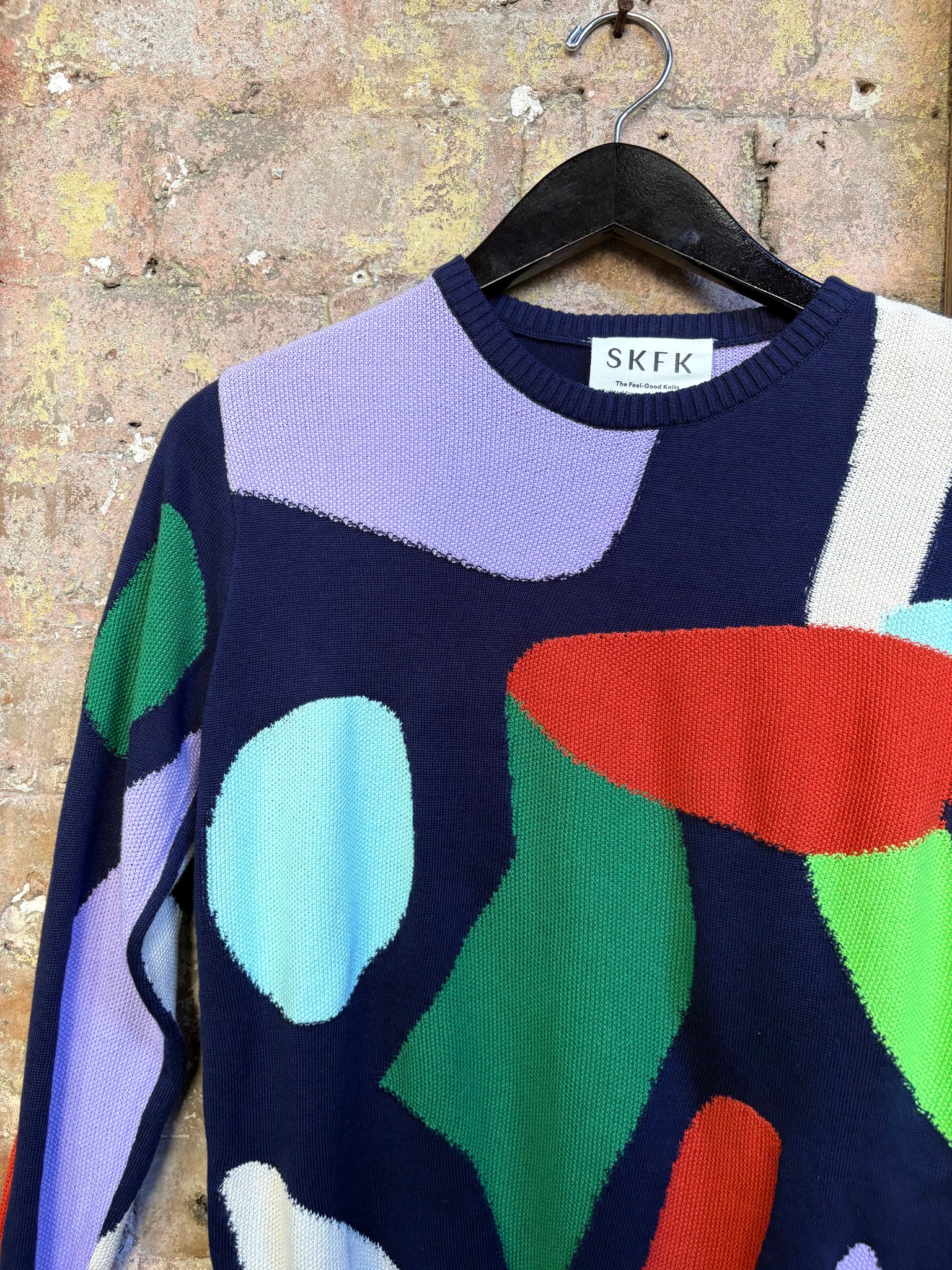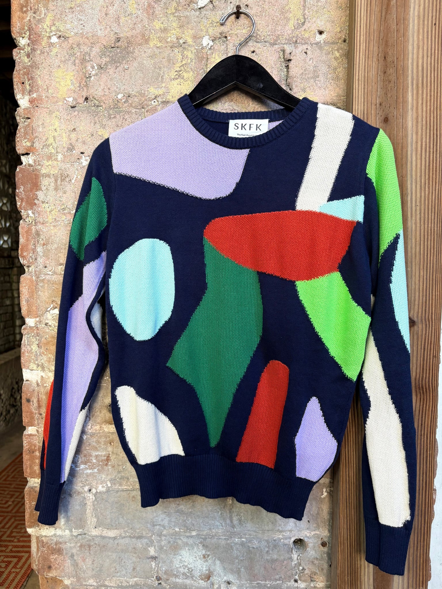 Great mixed organic pattern sweater made with beautifully textured 100% cotton that feels cozy and looks cool. Shape is relaxed with a slightly slouchy fit.