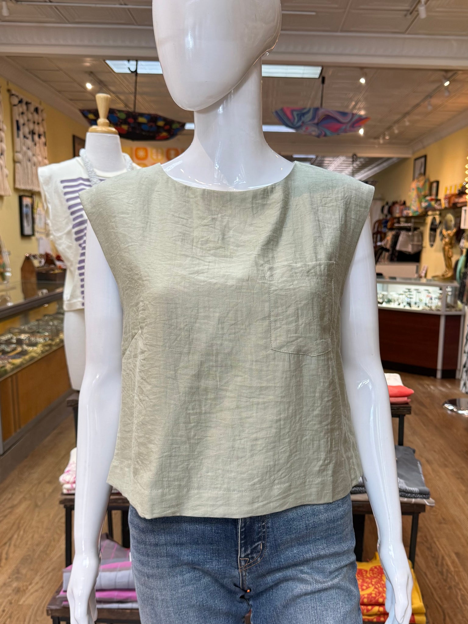 Box cut blouse with front pocket detail and a very easy to wear shape.