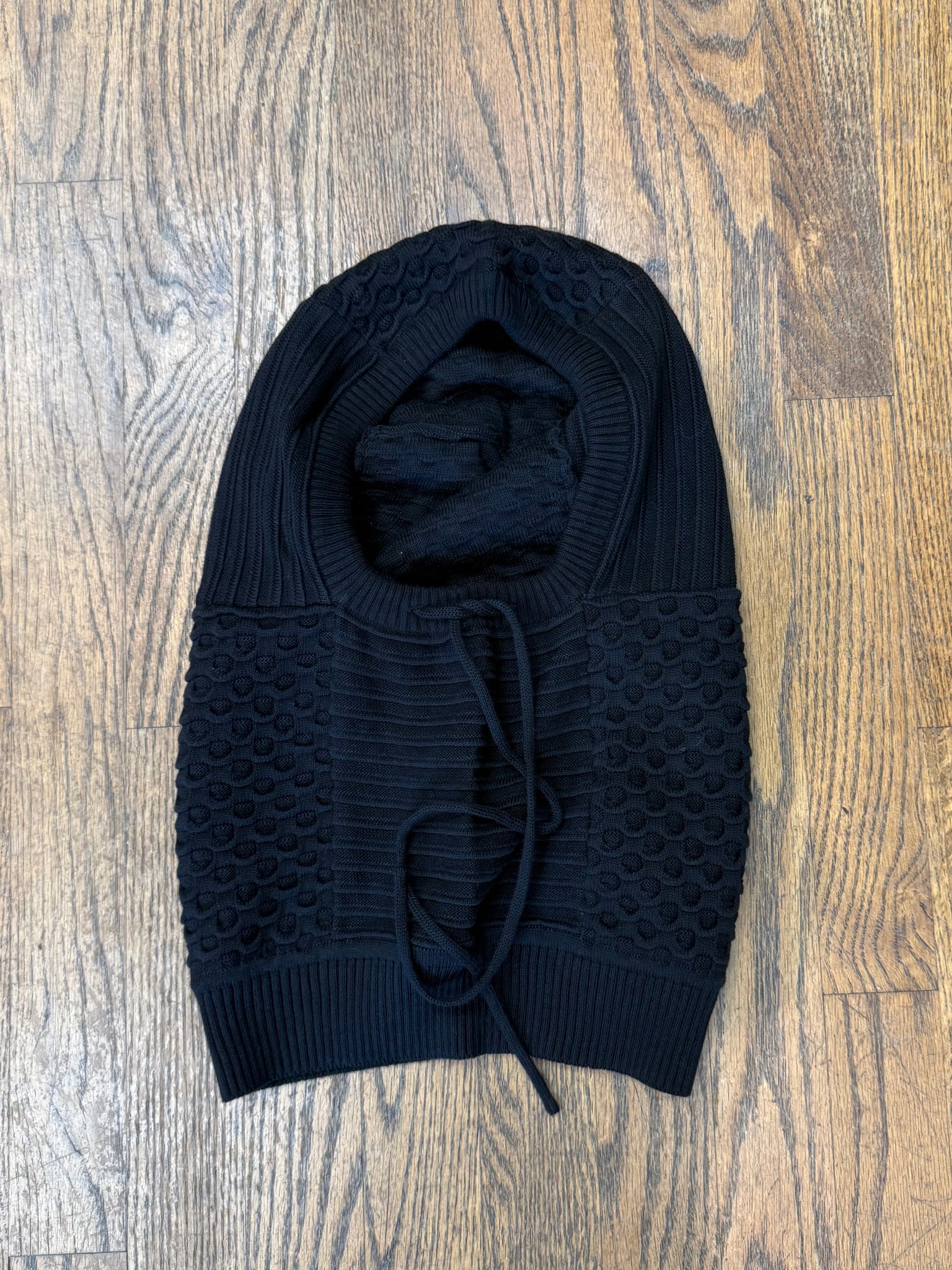 Turn any top into hoodie look with this cool, cotton accessory. This is a very fun piece to style and the look is so good. Lots of great texture in the knit with a drawstring attachment. There is no sizing on this garment.